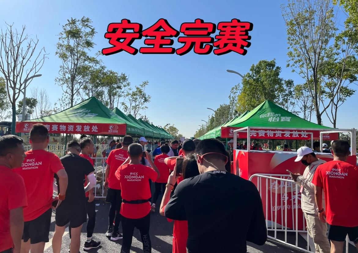比赛路线先在容东拐个弯,再到起步区拐两个弯,半程的终点就在起步区路上。一路上能看到城市计算中心(雄安眼)、商服中心、市民中心、悦容公园、容和塔(大织梭)、雄安门,进入启动区还能看到没启用的图书馆、体育中心等新建筑。